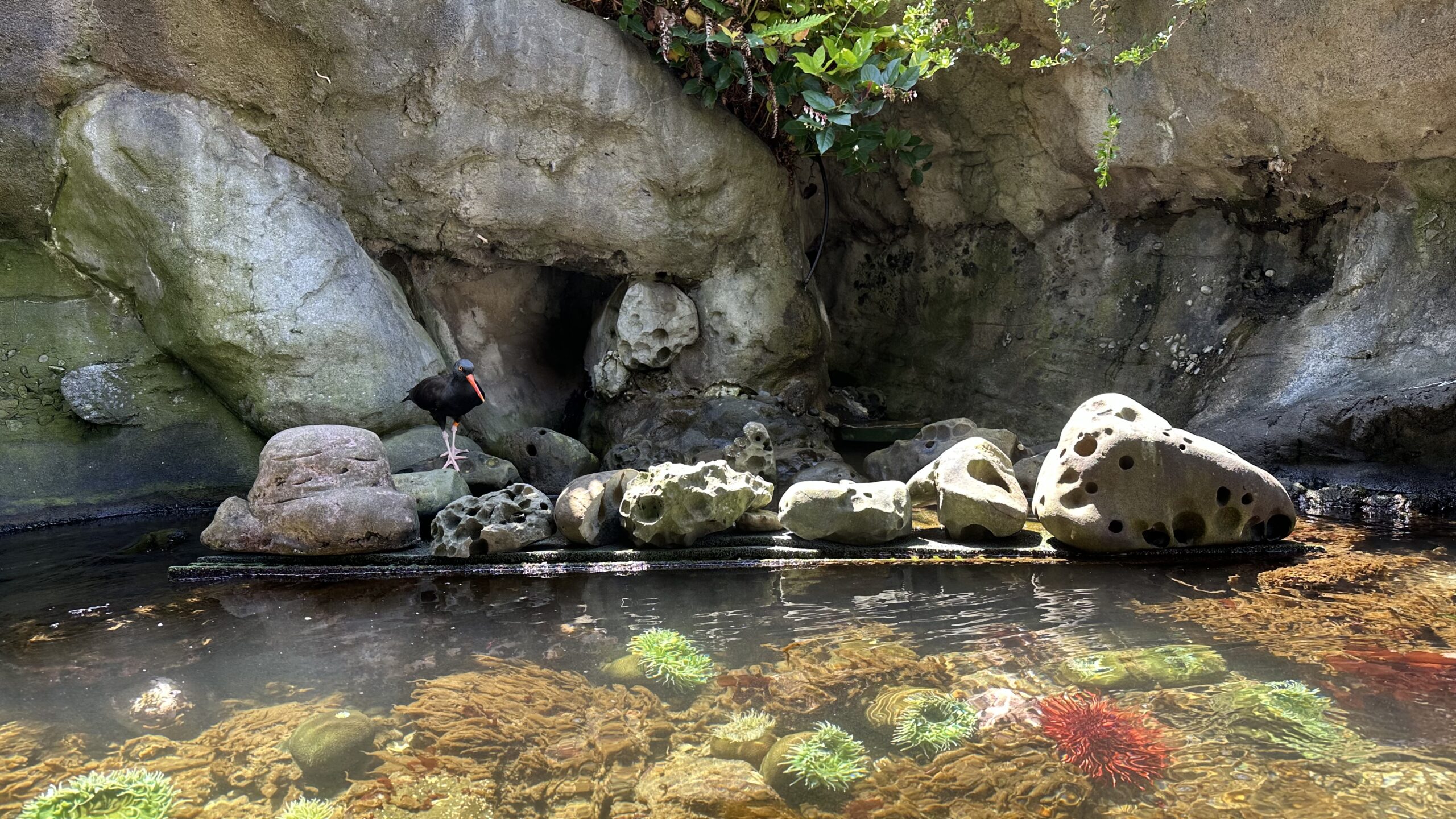 Ekspozycja inspirowana skalistym wybrzeżem pokazuje, jak wygląda życie na styku wody i lądu. Płytkie zbiorniki, skały i ptaki przybrzeżne oddają naturalny rytm pływów i odpływów, charakterystyczny dla tego regionu. To spokojniejsza część akwarium, która dobrze równoważy bardziej spektakularne, podwodne sale.