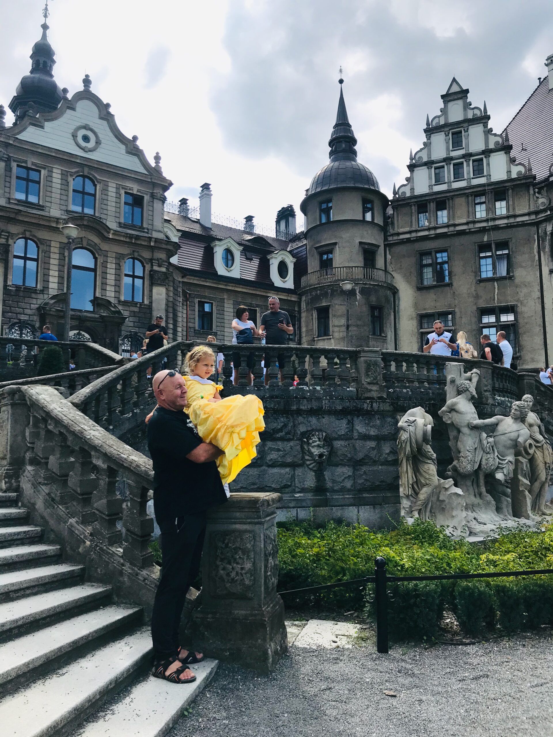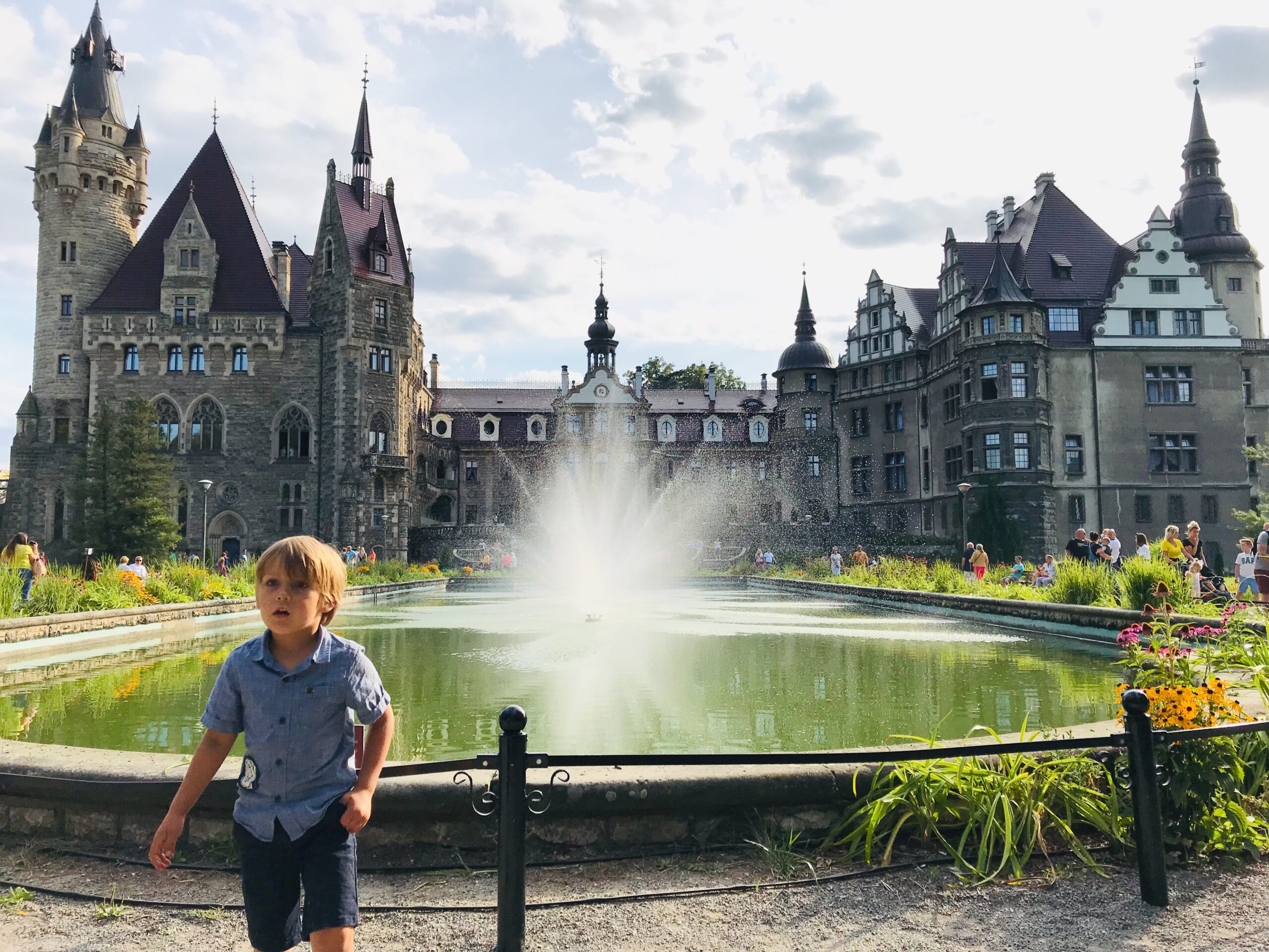 Zamek w Mosznej to jedno z tych miejsc, które zaskakują od pierwszej chwili. Eklektyczna fasada, dziesiątki wież i rozległe ogrody sprawiają, że człowiek na chwilę zapomina o codzienności i po prostu daje się prowadzić architekturze. Nasz wyjazd był pretekstem do uczczenia czwartych urodzin Klary i szybko okazało się, że zamek stworzy dla nas niezapomnianą scenografię do świętowania.