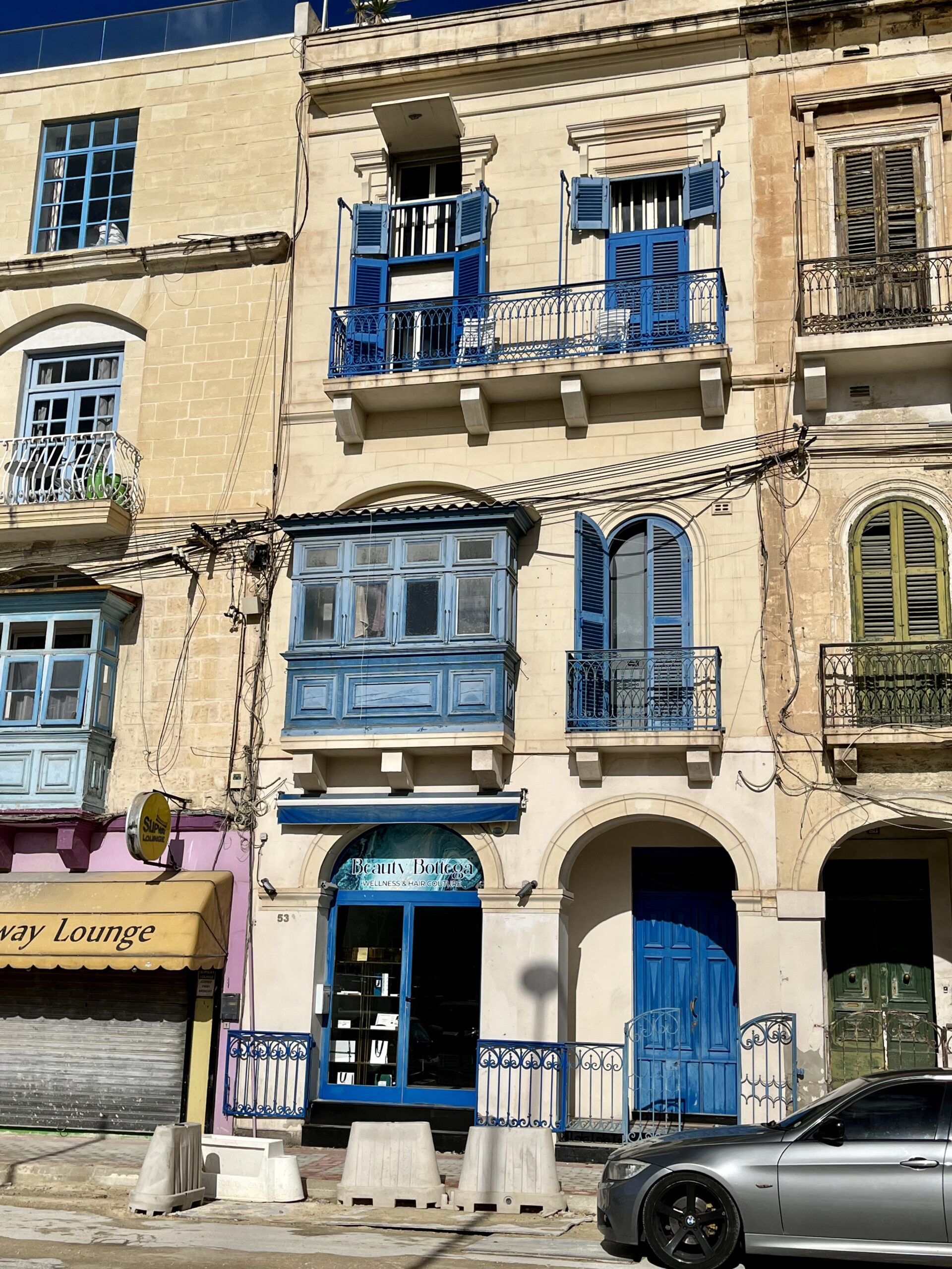 Po drodze do Valetty mijaliśmy kamienice, w których okna mają charakterystyczne drewniane nadwieszone balkony. Jedne odmalowane na soczysty czerwony lub granatowy kolor,  inne lekko spłowiałe, ale dzięki temu jeszcze bardziej fotogeniczne. Dzięki nim budynki wyglądają, jak z bajki i trudno oprzeć się, by ich nie fotografować.