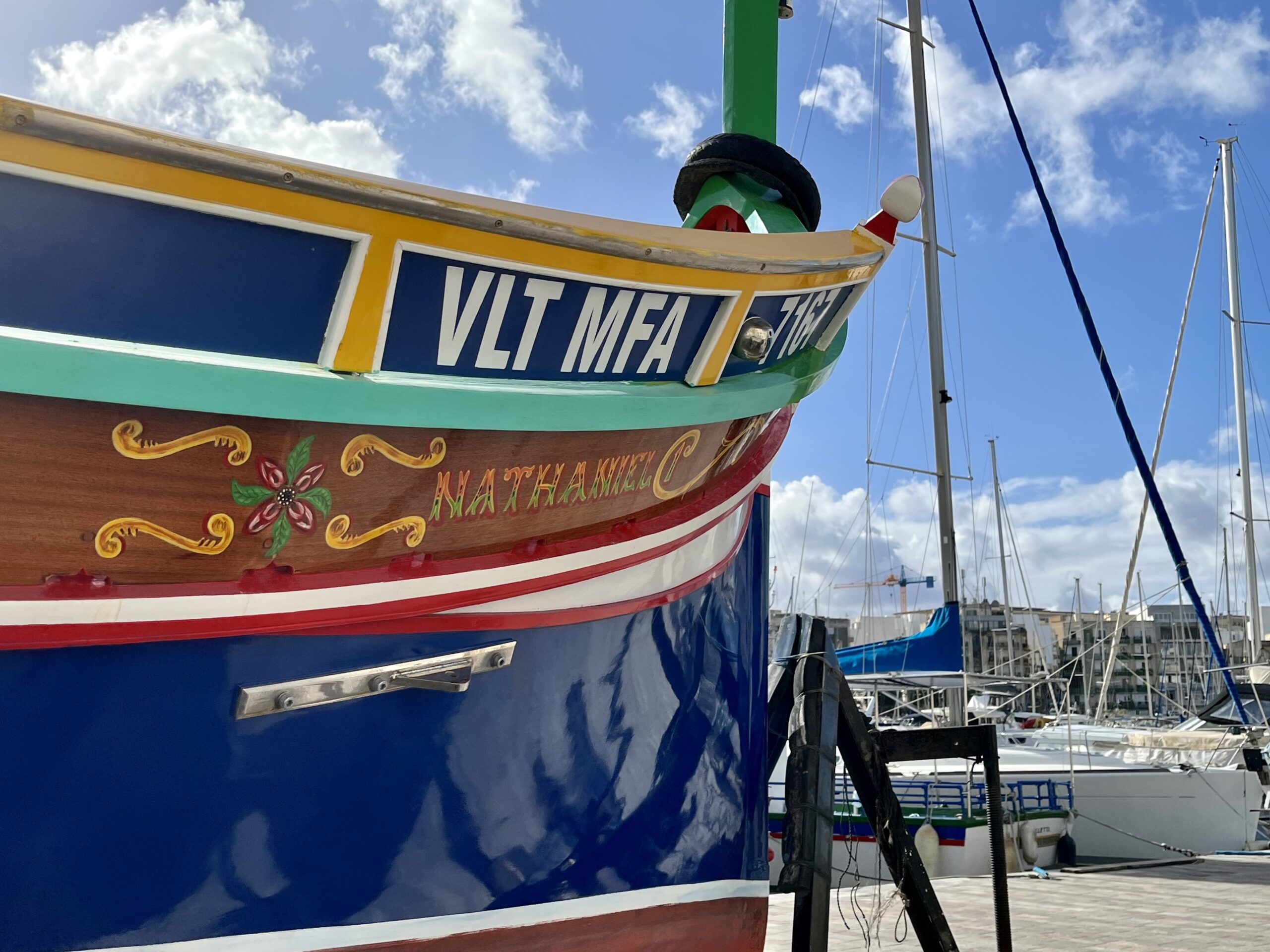 Kolorowe luzzu to jeden z najbardziej rozpoznawalnych symboli Malty. Każda z tych łódek ma swój własny charakter — ręcznie malowane ornamenty, intensywne barwy i oczywiście słynne oko Ozyrysa, które mają chronić rybaków przed złym losem. Z bliska widać, ile w nich rzemiosła i historii. To małe dzieła sztuki, które nadają maltańskim portom wyjątkowy, bajkowy klimat.