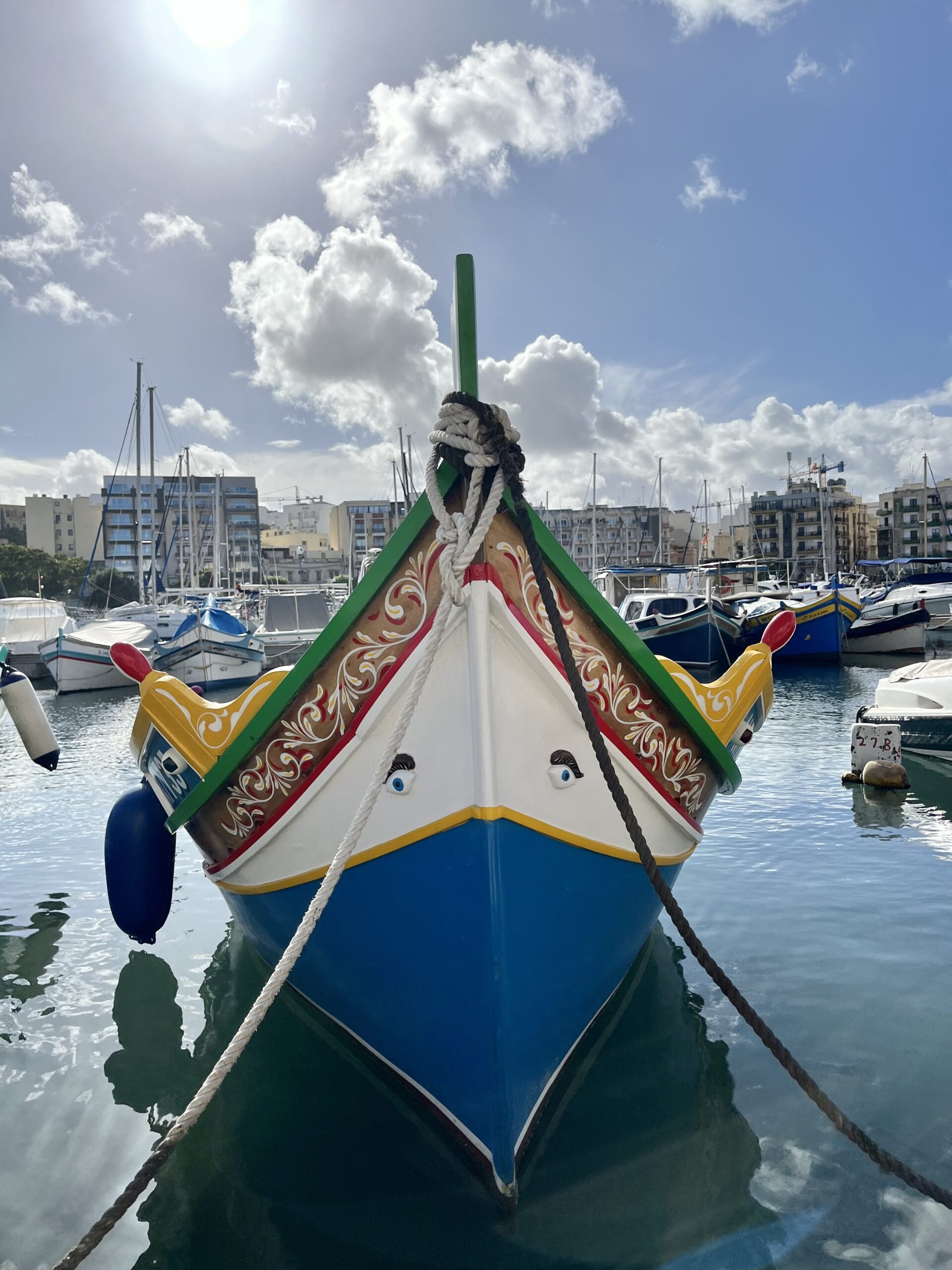 Najbardziej lubiliśmy podziwiać tradycyjne maltańskie łódki — luzzu. Każda z nich ma na dziobie oko Ozyrysa. Malowanie ich, to stary zwyczaj, jeszcze z czasów fenickich, kiedy wierzono, że oko strzeże rybaków przed złymi duchami i burzami. Dziś to nie tylko symbol Malty, ale też piękny, kolorowy amulet, który ogląda się z taką samą ciekawością jak dzieło sztuki.