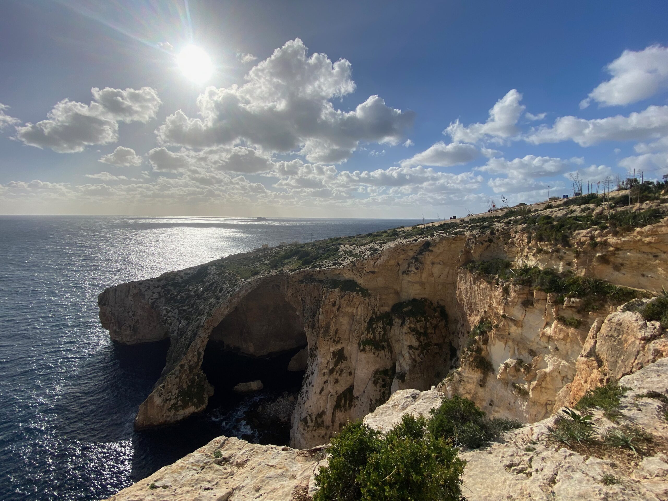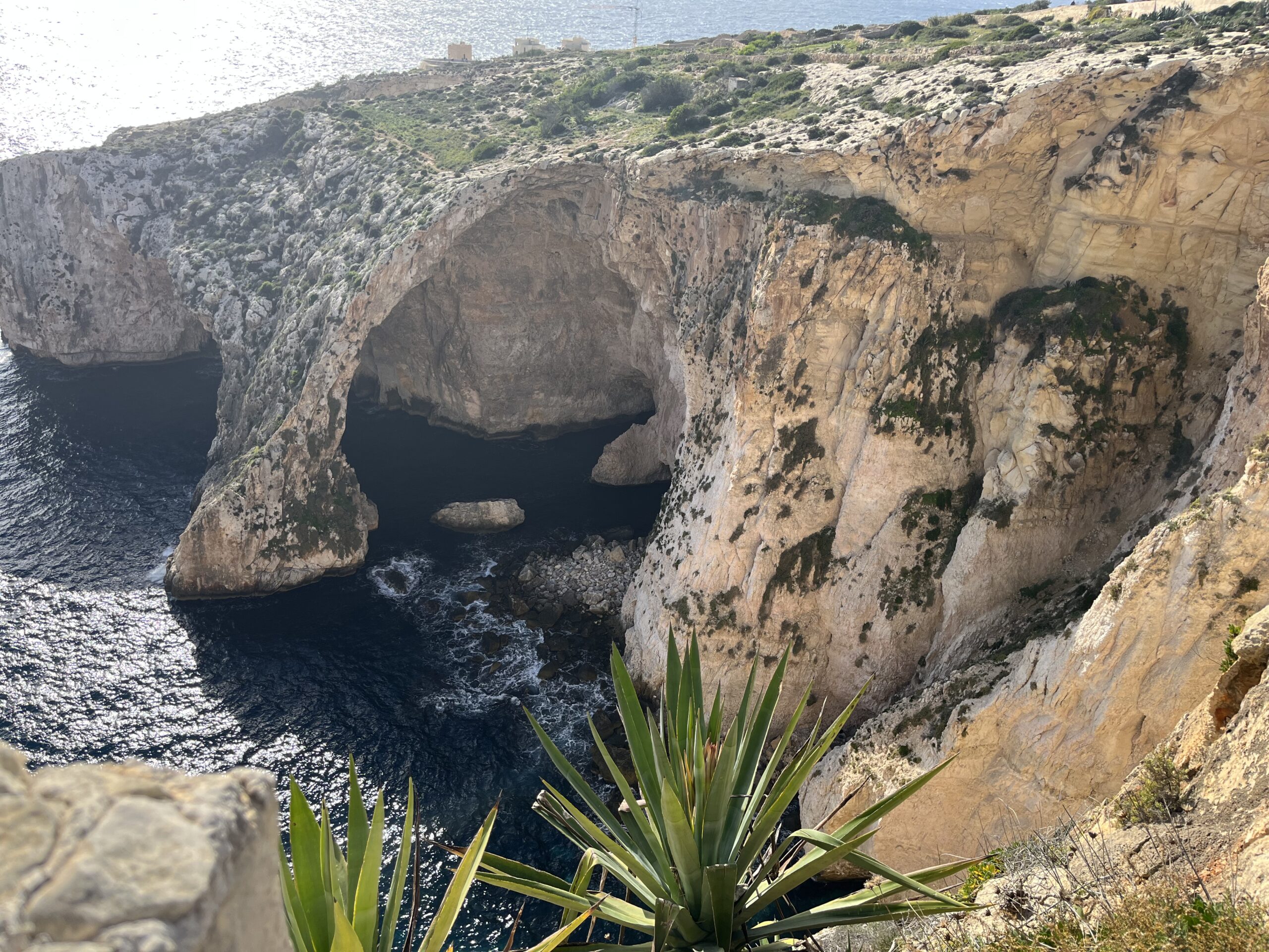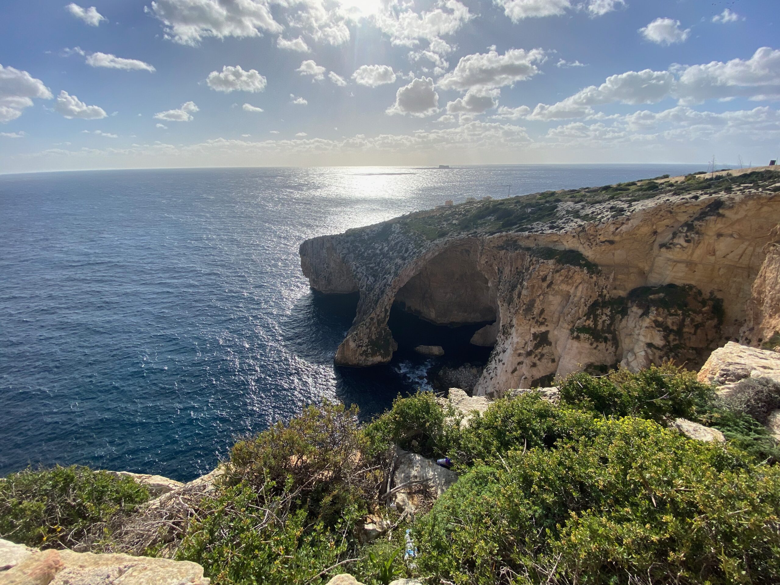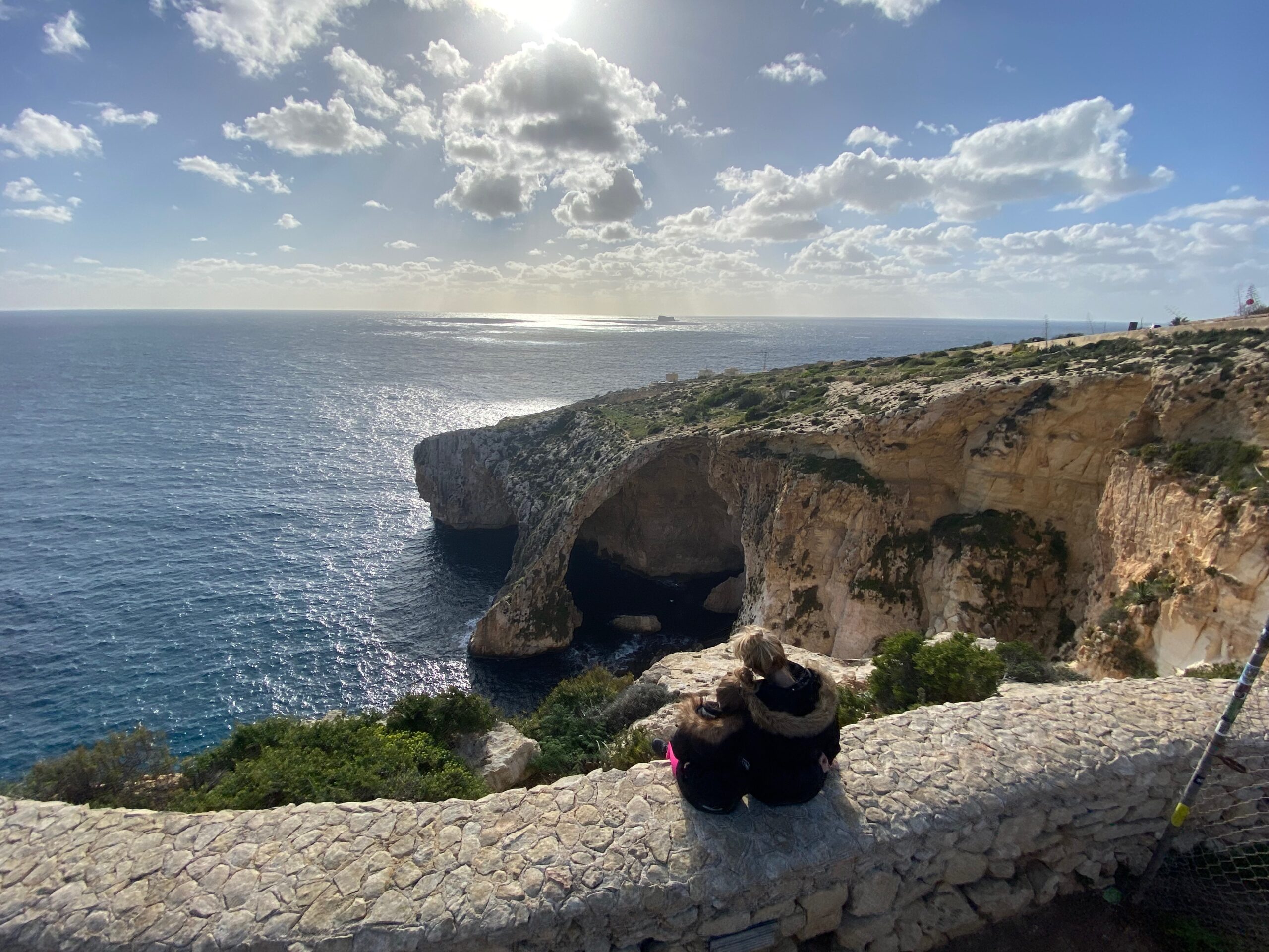 Z punktu widokowego rozciąga się panorama, którą trudno się nasycić — turkus wody przechodzi tu w głębokie błękity, a światło odbija się od wapiennych ścian w taki sposób, że grota wygląda jak podświetlona od środka. Nic dziwnego, że to miejsce przyciąga tylu ludzi… choć tego dnia mieliśmy wrażenie, że Malta postanowiła zrobić nam mały prezent. Oprócz nas było zaledwie kilka innych osób.