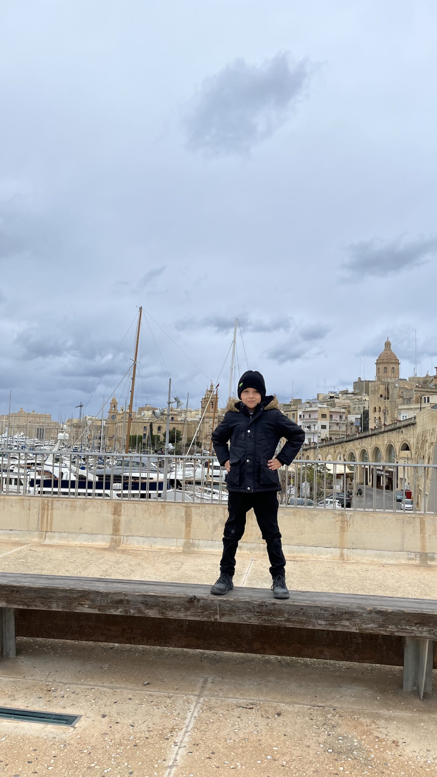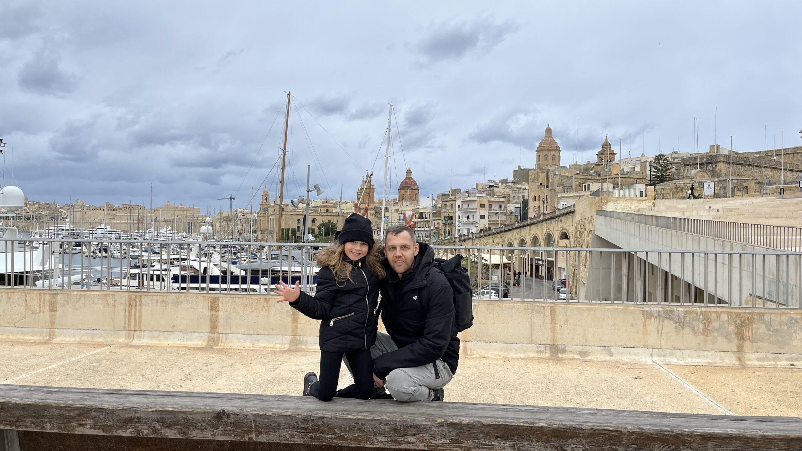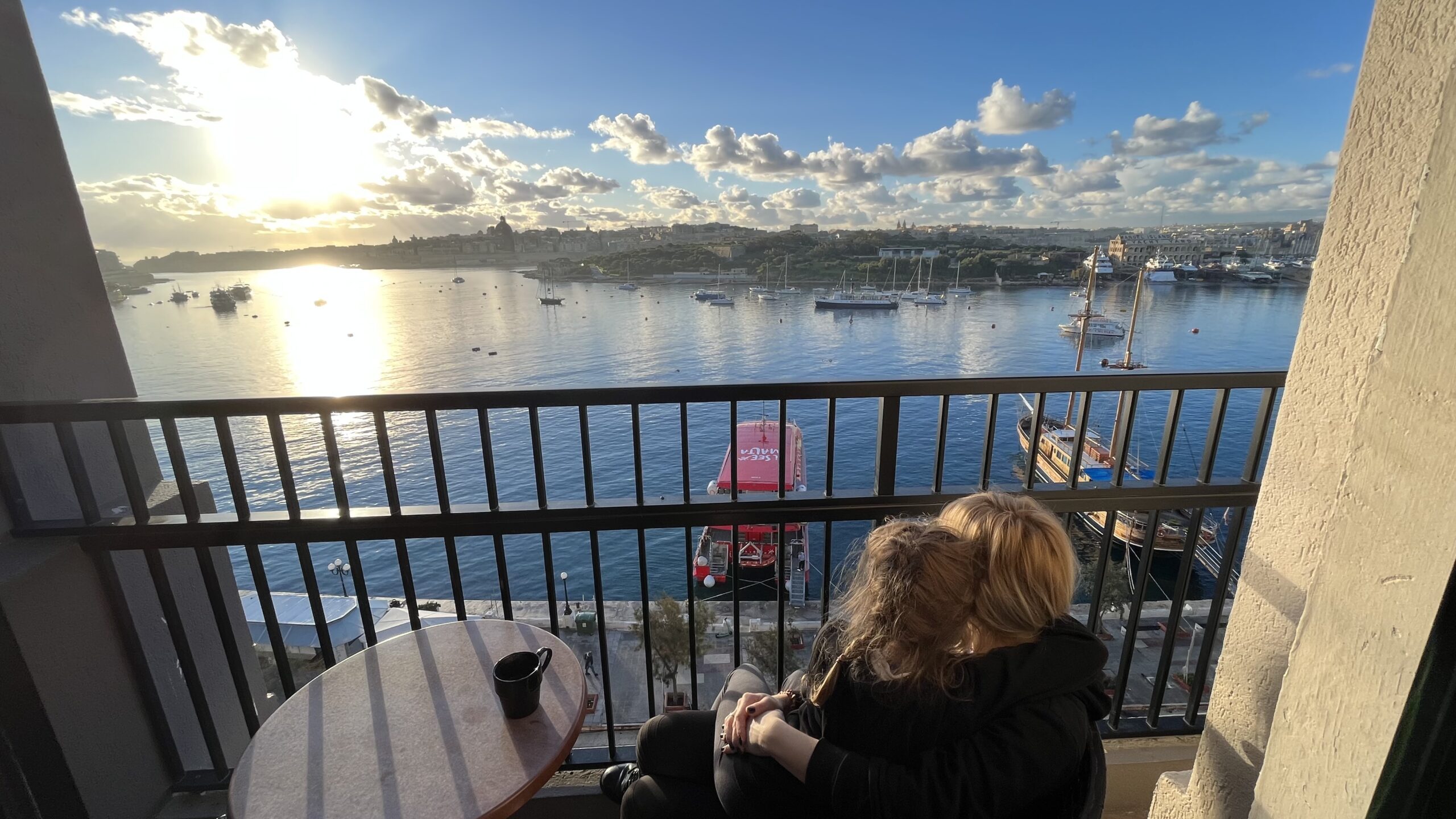 Jedna z naszych ulubionych chwil na Malcie — ciepłe światło wschodzącego słońca, spokojna zatoka i ten widok, który wciąga jak dobry film. Każdego ranka siadałyśmy z Klarą na balkonie, patrząc, jak słońce miękko wznosi się nad wodę, a łódki powoli kołyszą się na falach. Tak wyglądał nasz styczniowy poranek i wieczór — kawa, koc, cisza i Valetta po drugiej stronie zatoki. Właśnie dla takich momentów lubimy podróżować.