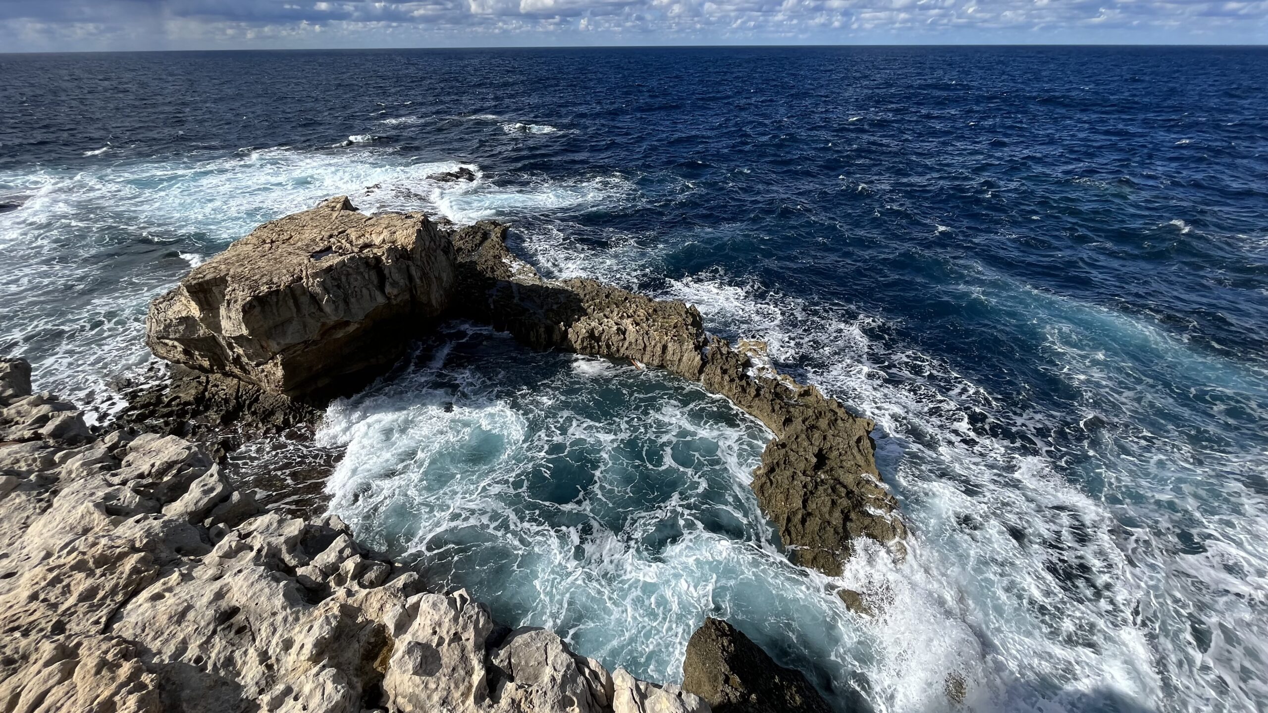 Miejsce, w którym kiedyś stało słynne Azure Window, wciąż robi ogromne wrażenie. Choć naturalny łuk zawalił się kilka lat temu, surowe klify Dwejry i wzburzone morze nadal pokazują potęgę natury. Wystarczy stanąć na skraju skały, by poczuć, jak wiatr i fale pracują tu bez przerwy — tworząc krajobraz, który zmienia się z roku na rok, ale zawsze pozostaje spektakularny.