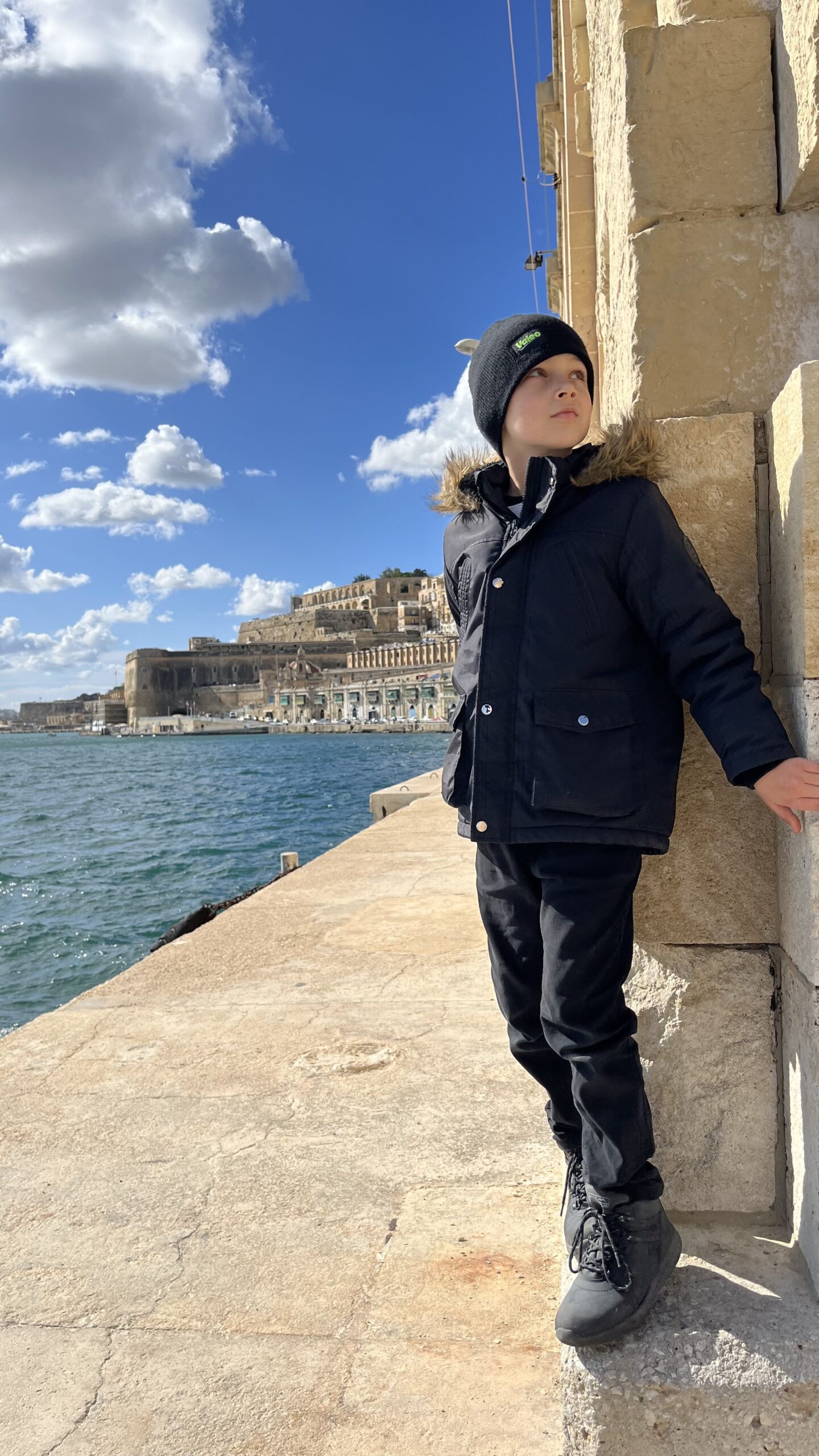 Droga z Sliemy do Valletty sama w sobie jest małą podróżą. Promenada prowadzi tuż przy wodzie, a z każdym krokiem otwiera się nowy kadr: na zacumowane łódki, na dawne fortyfikacje, na pastelowe kamienice, które zdają się mięknąć w styczniowym słońcu.