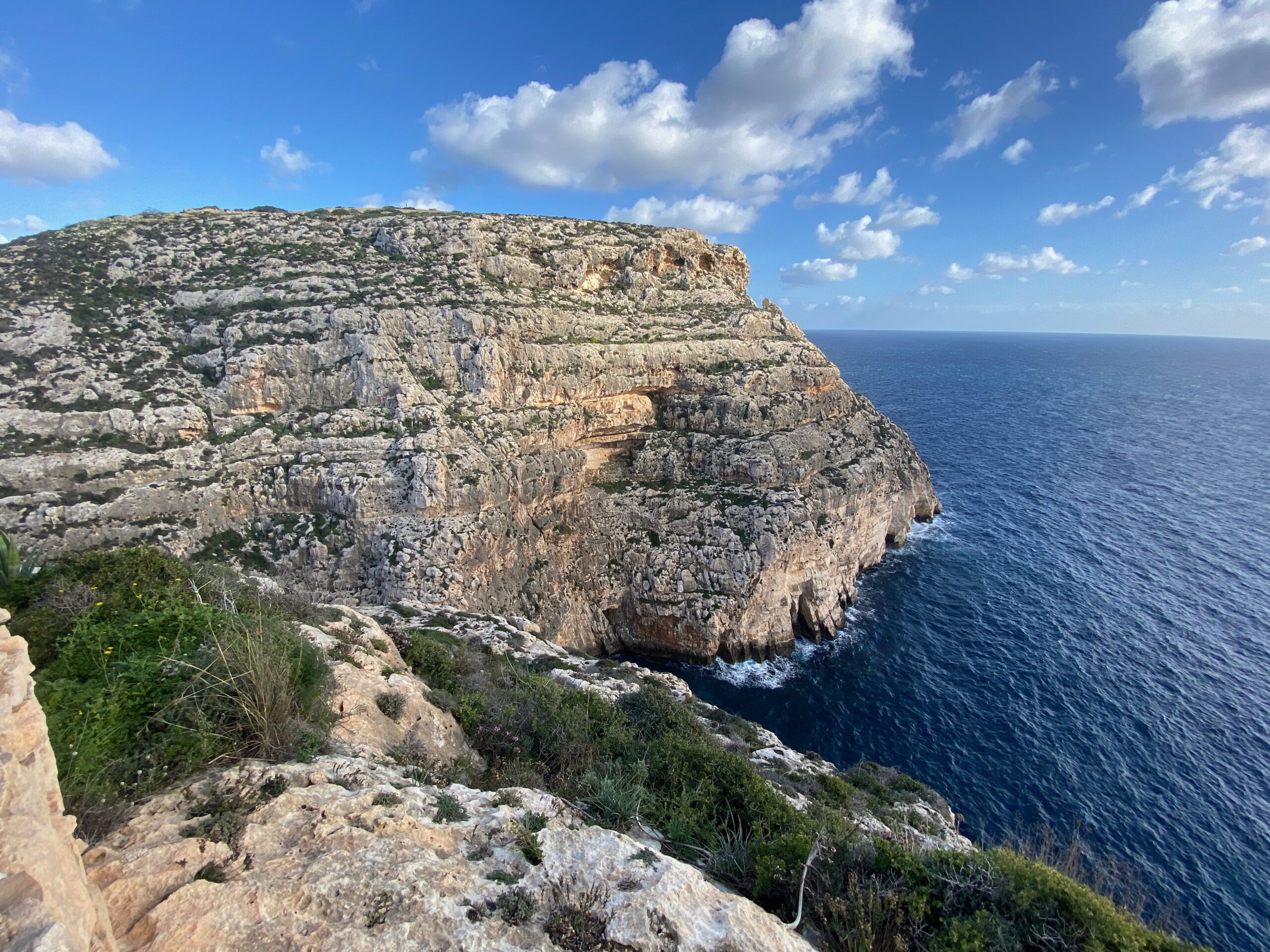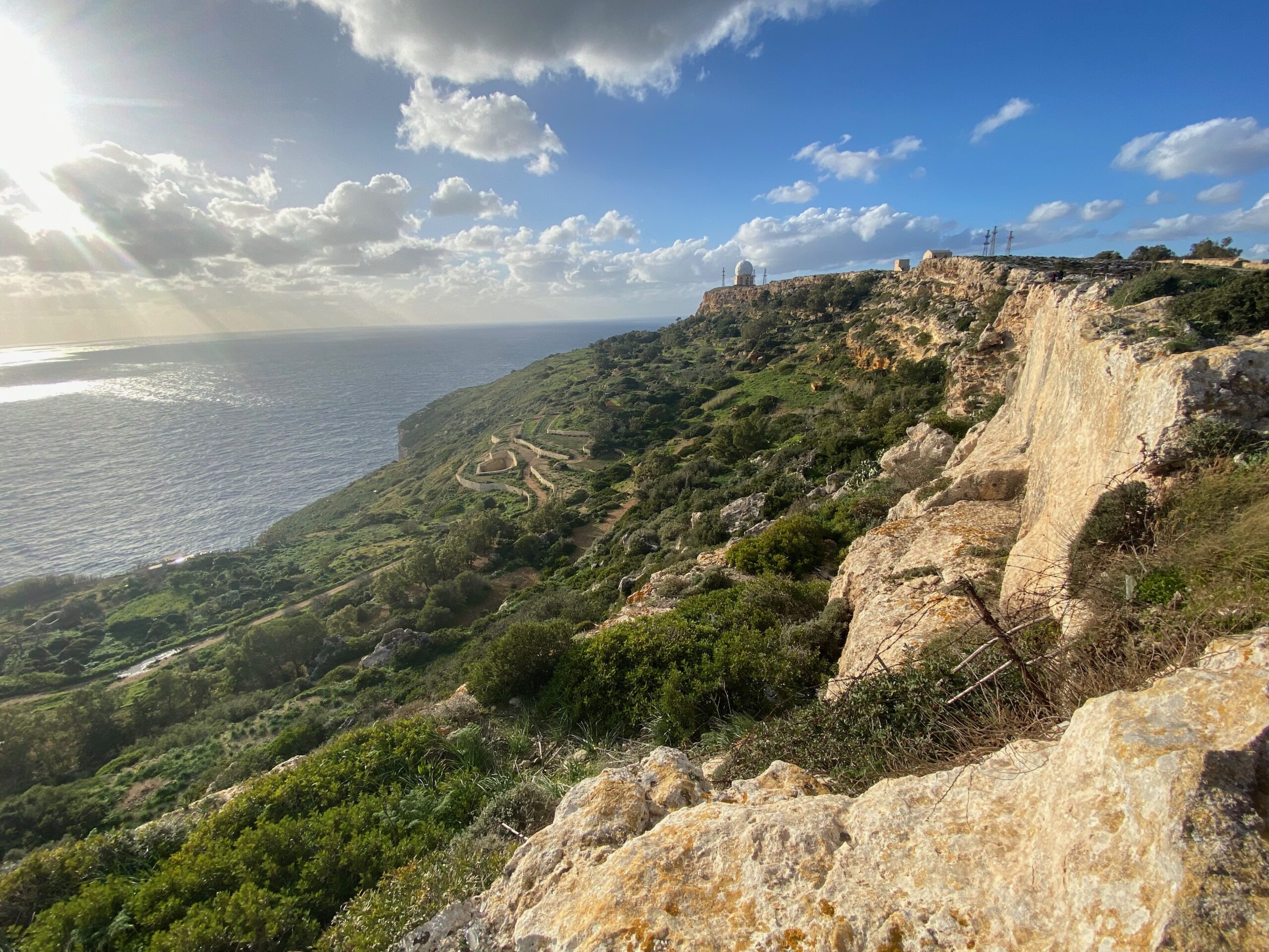 Kolejnym punktem na naszej mapie przygód były Klify Dingli,  kolejne miejsce na Malcie, gdzie natura gra pierwsze skrzypce. Strome, wapienne ściany spadają tu niemal pionowo do Morza Śródziemnego, a wiatr niesie ze sobą zapach soli i słońca. To najbardziej widowiskowe naturalne wybrzeże wyspy — wysokie, surowe i pełne przestrzeni, która zapiera dech.
