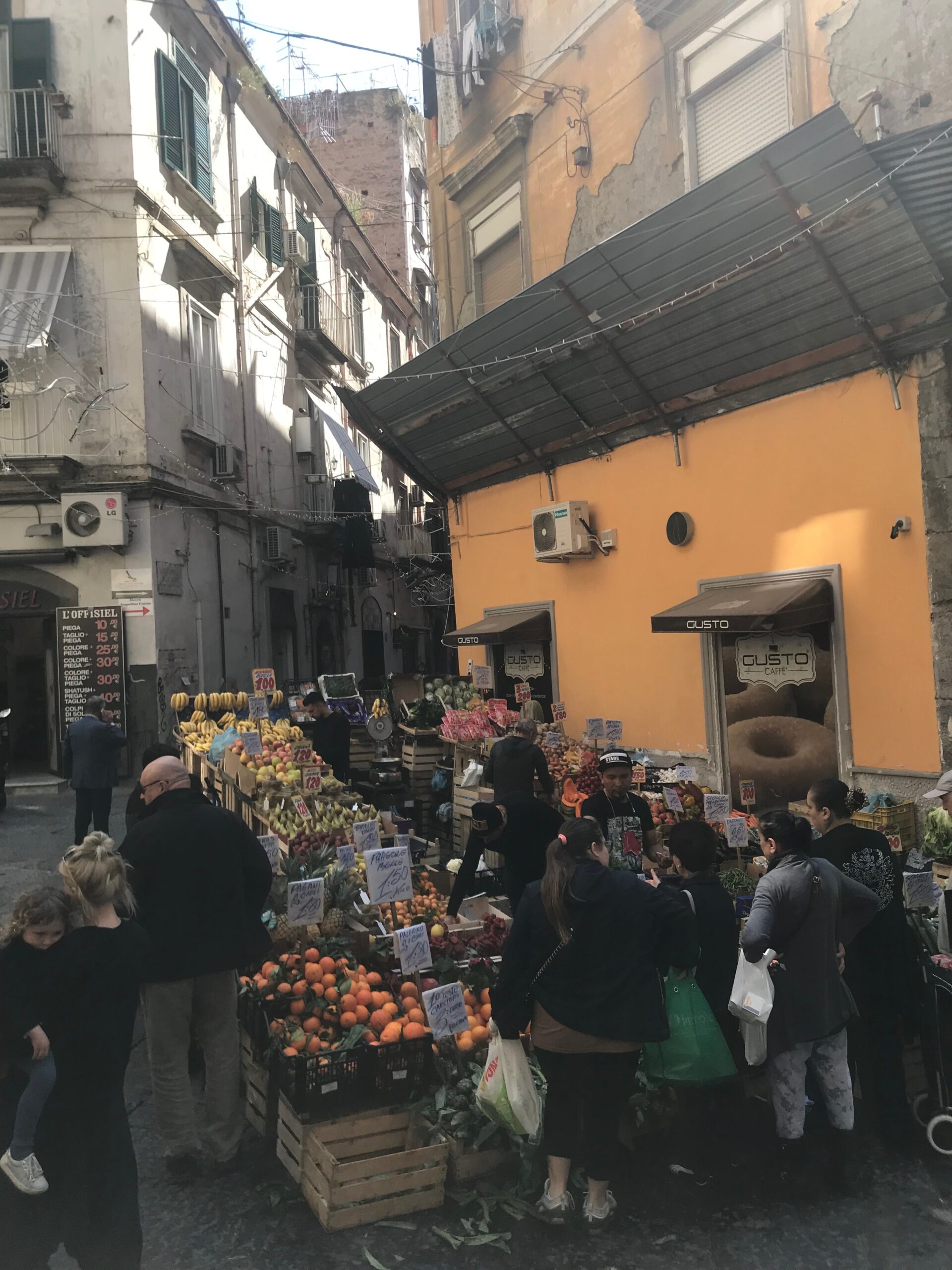 Pignasecca Market lub inne lokalne targi to miejsca, w których Neapol pokazuje swoją najbardziej autentyczną twarz. Krzyki sprzedawców, zapach ryb, warzyw i kawy, szybkie rozmowy i gesty — wszystko dzieje się jednocześnie.