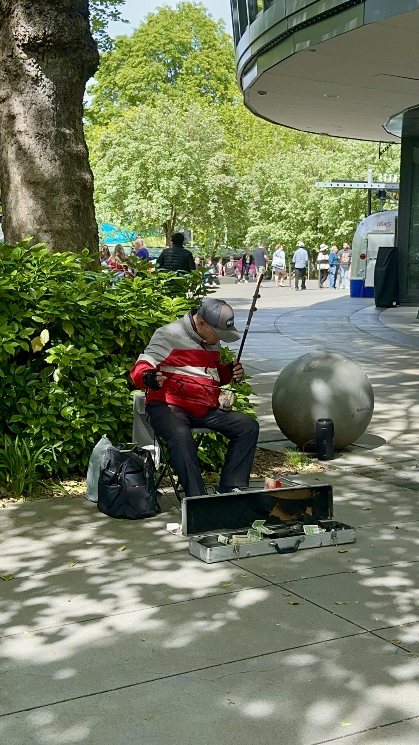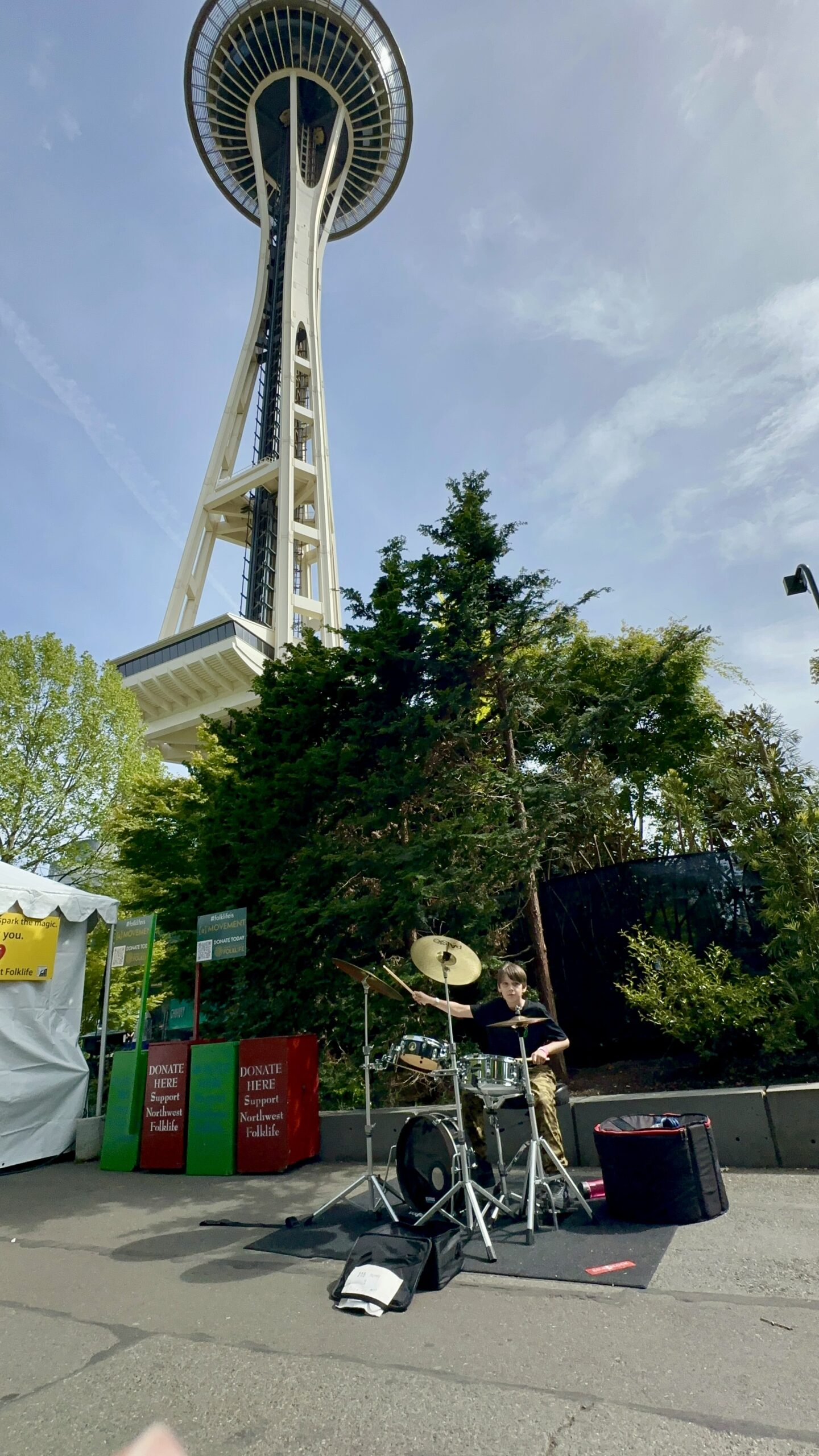 Pod Space Needle muzyka miesza się z rozmowami, śmiechem i dźwiękami miasta. To tutaj Jeremi zagrał swoją solówkę na perkusji. W tle — smukła sylwetka wieży, a przed nami kilka minut spontanicznej, miejskiej radości, które zapamiętamy na długo.