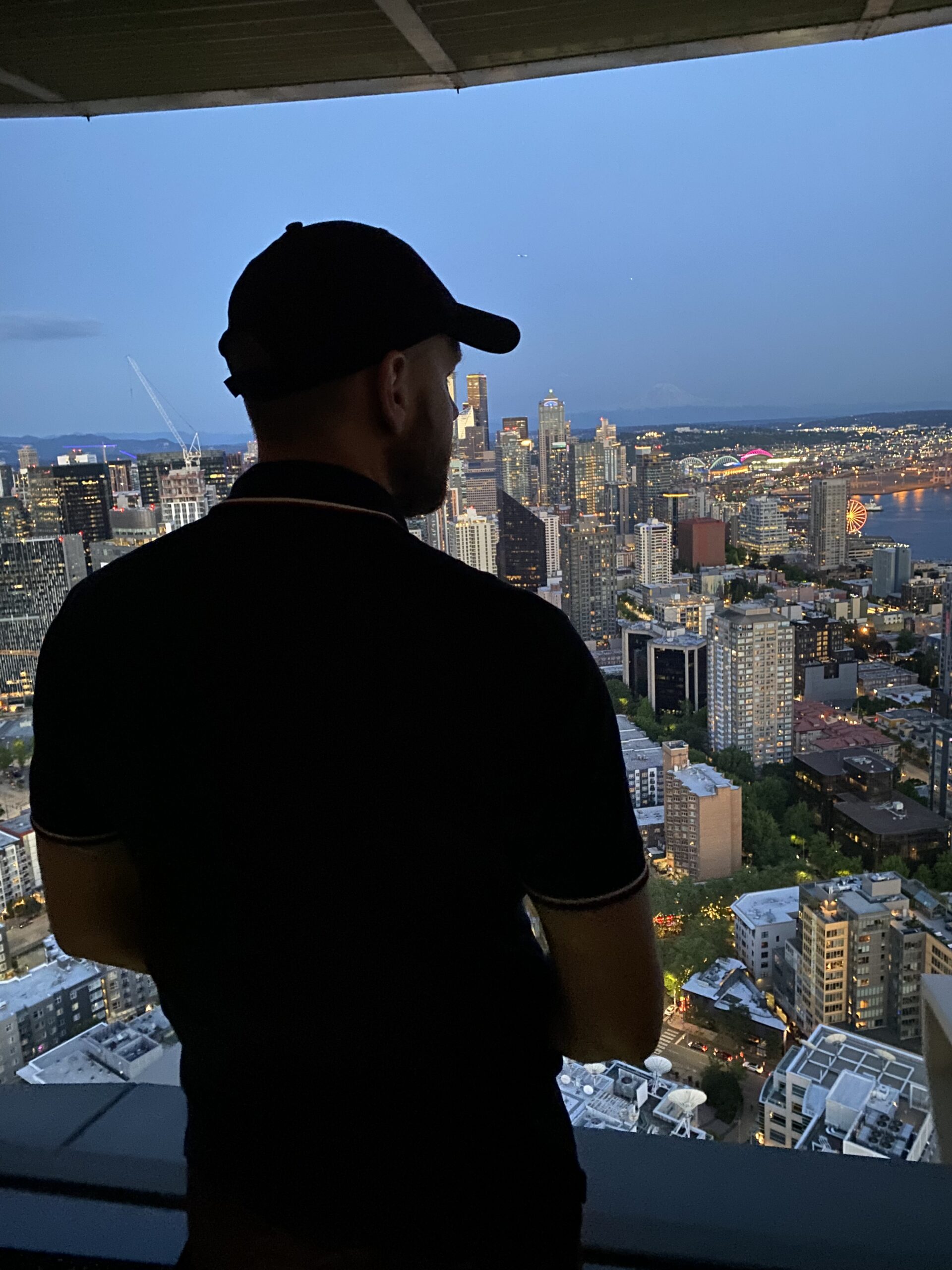 Space Needle to taki punkt, który nie tylko daje panoramę. On zatrzymuje człowieka na moment — w miejscu, w myślach, w emocjach. Wszyscy patrzymy w tę samą stronę, ale każdy widzi coś innego: jedni wielkie miasto, inni wodę, inni góry.