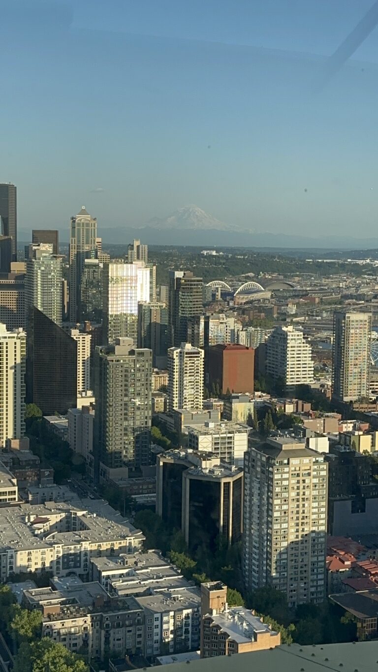 Jeśli chcesz zobaczyć Seattle w pełnej krasie, najlepiej wybrać poranek lub wczesne popołudnie. Wtedy światło jest najprzyjemniejsze, a miasto wygląda wyjątkowo wyraźnie — także Mount Rainier, jeśli akurat raczy się pojawić na horyzoncie.