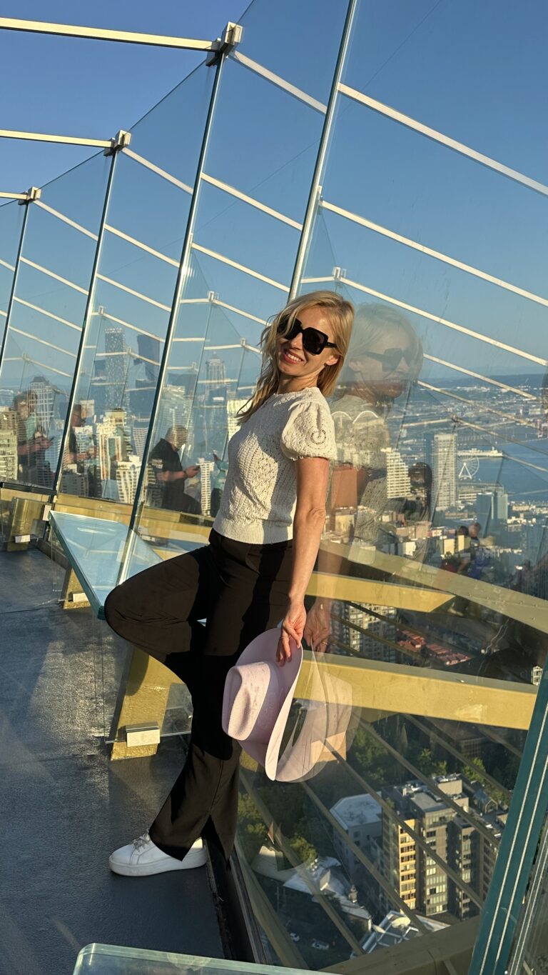 „To co, wjeżdżamy?” – pytam, choć odpowiedź znamy już wszyscy. Space Needle to jedno z tych miejsc, które od pierwszej chwili budzą ekscytację – trochę jak początek filmu, w którym miasto jest głównym bohaterem.